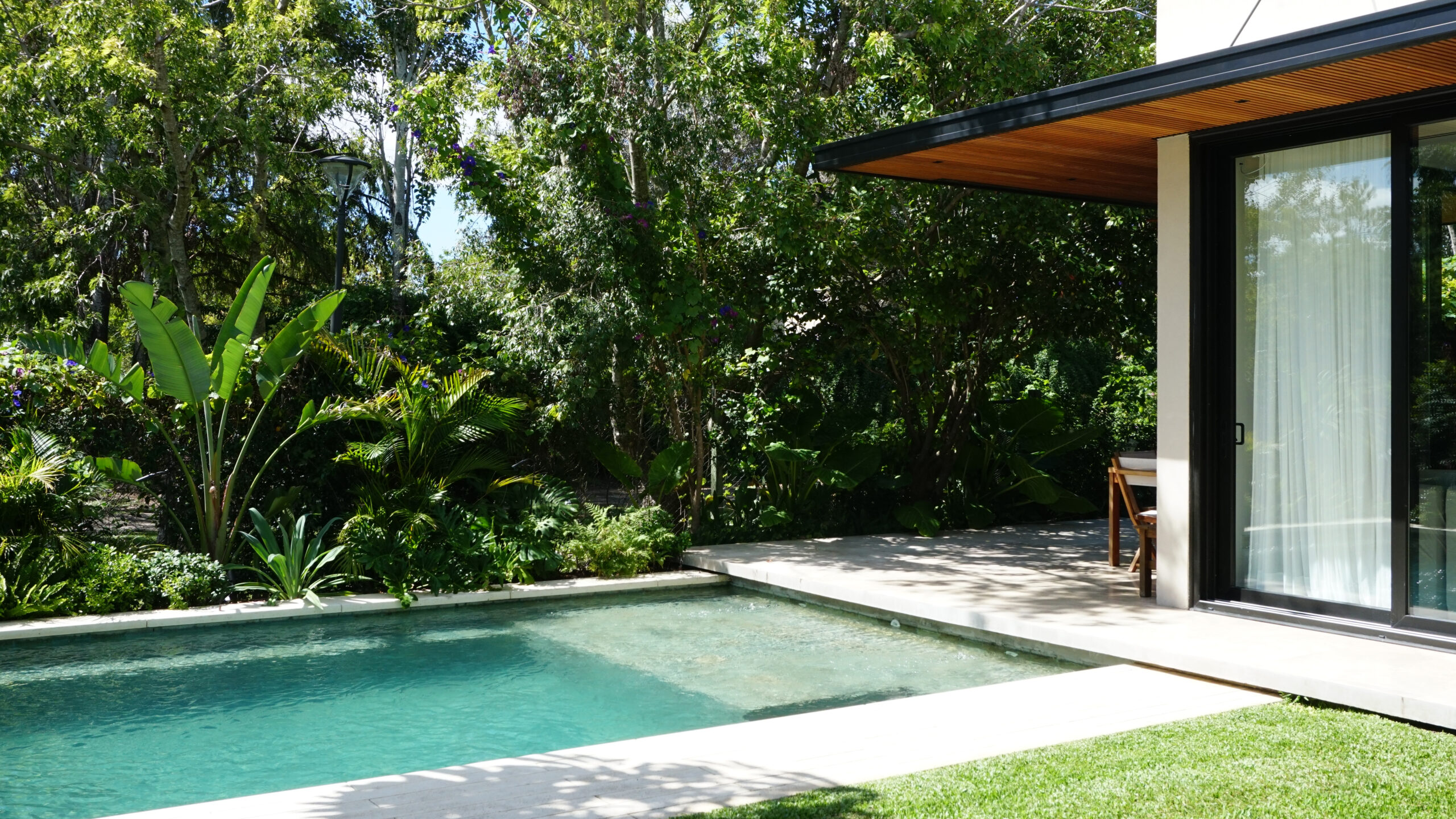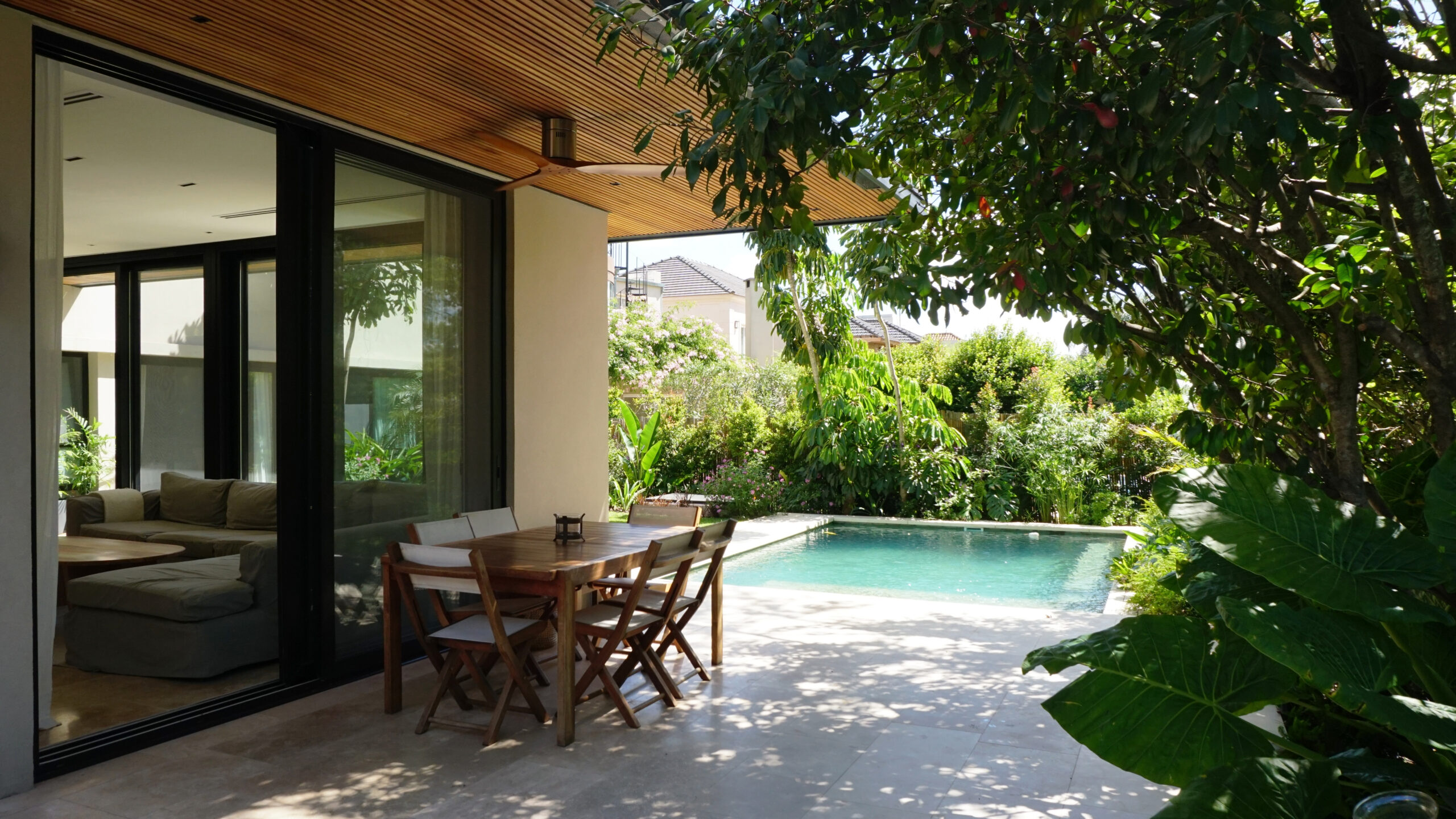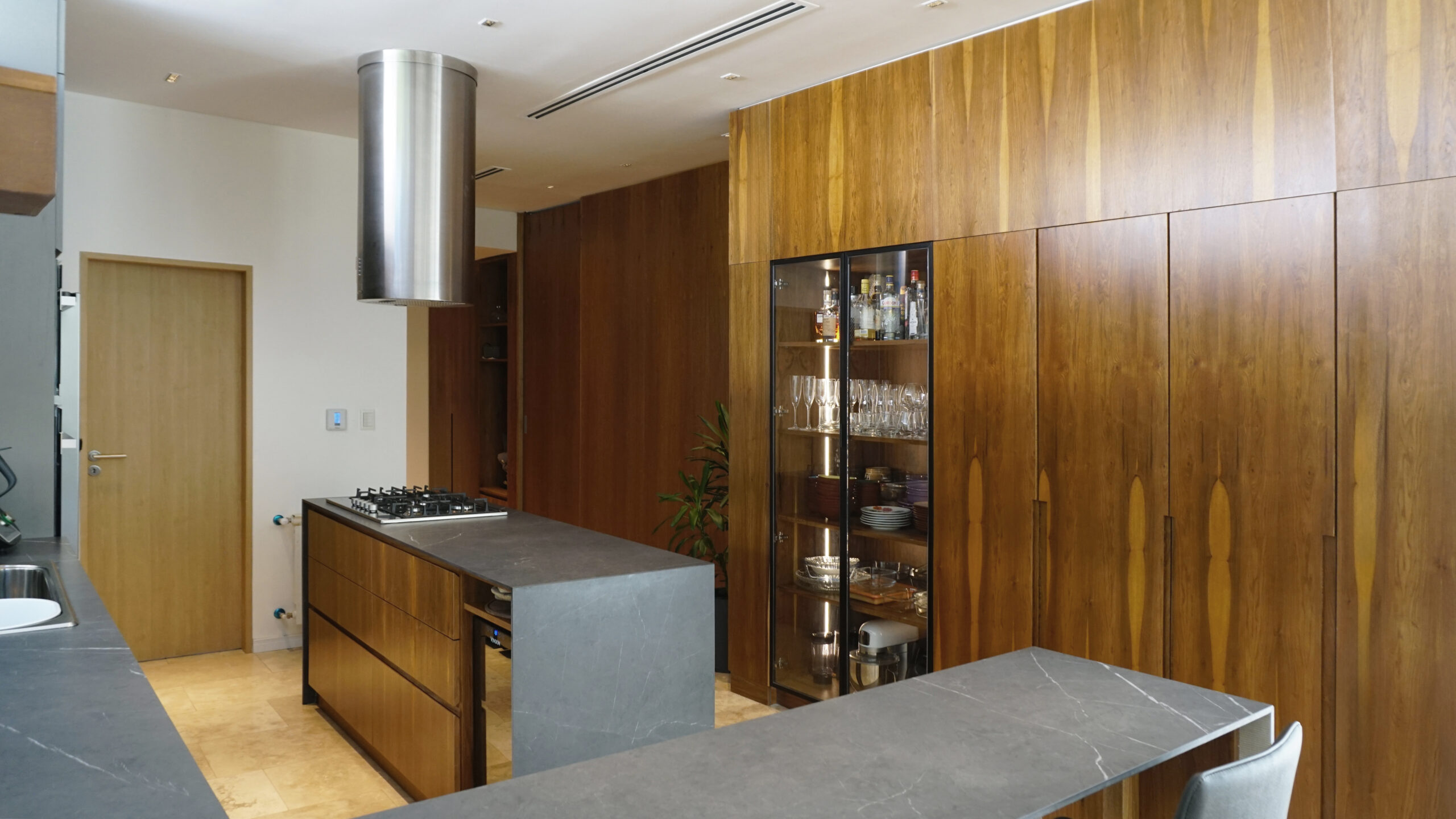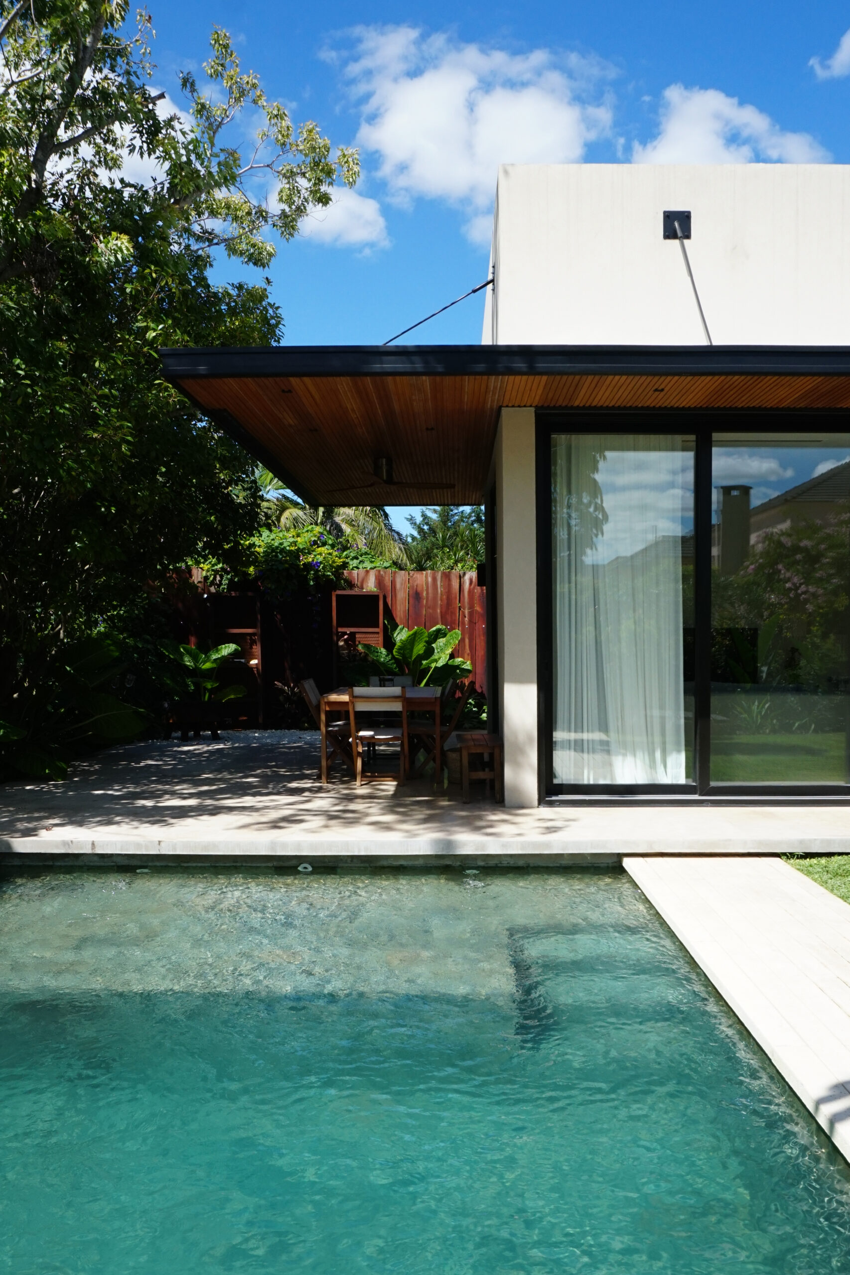Desde la fachada de mármol travertino rústico hasta las aberturas con DVH, los muebles de petiribí realizados a medida, los sistemas de calefacción y aire centrales, cada detalle refleja una cuidadosa fusión de calidez y contemporaneidad. La adición de una nueva galería y una piscina revestida en piedra Bali amplía las posibilidades al aire libre, ofreciendo un oasis dentro del espacio doméstico. La galería se fusiona con el uso de la piscina, y las aberturas piso techo diluyen los límites del interior.